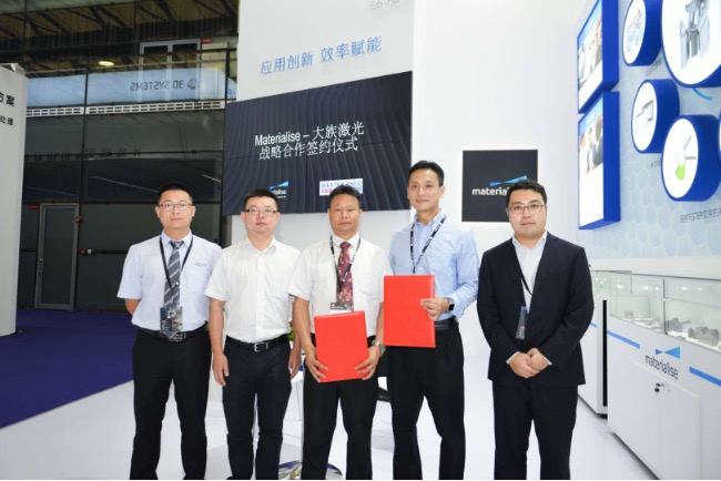 會(huì)展期間,大族激光智能裝備集團(tuán)3D激光加工產(chǎn)品中心總經(jīng)理與上?,斎鹚谷S打印技術(shù)有限公司總經(jīng)理何凡簽約戰(zhàn)略合作協(xié)議。雙方將在產(chǎn)業(yè)合作、關(guān)鍵技術(shù)攻關(guān)、市場(chǎng)開拓等方面開展深入合作,以技術(shù)創(chuàng)新為動(dòng)力,加快增材制造產(chǎn)業(yè)化步伐。