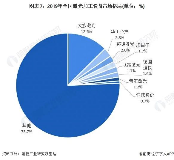 400-666-4000 全國激光加工設(shè)備市場格局較為分散,全國激光加工設(shè)備TOP8占比僅為24.3%,市場集中度較低,排名首位的大族激光市占率也僅為12.6%,但是高于占比排名第二位的華工科技(占有率僅為2.8%)約10個(gè)百分比,呈現(xiàn)斷崖式領(lǐng)先。