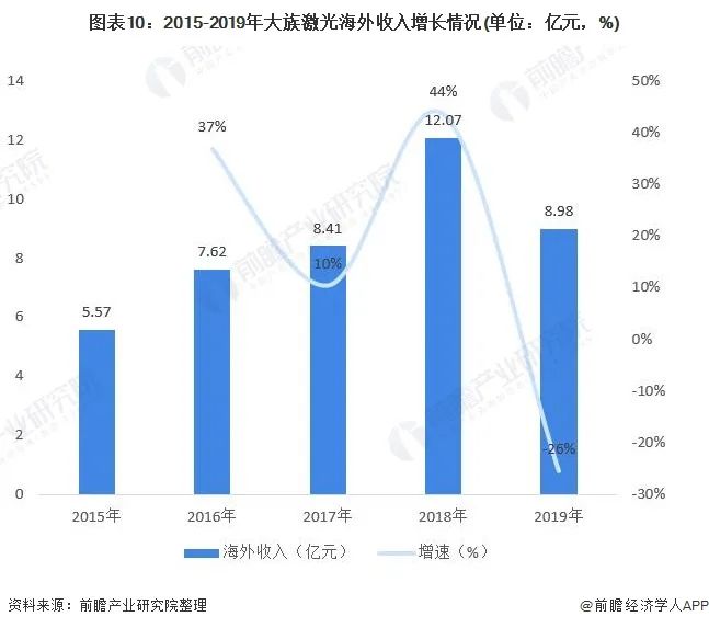 大族激光不僅銷往國內(nèi),還大力銷往海外,2015-2018年大族激光海外收入快速增長,2019年出現(xiàn)下降,達(dá)8.98億元,同比下降26%,占公司總收入的9.4%。2020年公司加快國際化步伐,對(duì)標(biāo)國際競爭對(duì)手,重新規(guī)劃產(chǎn)品及戰(zhàn)略,進(jìn)軍海外高端市場。