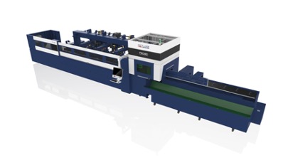 激光切管機(jī)的工作過程:成捆管料吊裝至上料部分,上料機(jī)構(gòu)通過上料、分料、勾料、抬料、測長、夾料、送料的這些動(dòng)作,將原料自動(dòng)平穩(wěn)地放到床身部分的輔助支撐,輔助支撐的高低根據(jù)管材的規(guī)格大小進(jìn)行伺服調(diào)整,送料夾頭根據(jù)測長得到的原料長度數(shù)據(jù)移動(dòng)到自動(dòng)測算的位置進(jìn)行夾料,然后將管料送到切割區(qū),進(jìn)行端頭修邊,最后根據(jù)自動(dòng)編程軟件做好的套料程序進(jìn)行切割,切斷的每個(gè)工件自動(dòng)滑落到操作者旁邊的成品框,人工將工件收集到指定成品料框,在進(jìn)行管材切割的同時(shí),下一根管材在上料結(jié)構(gòu)同步進(jìn)行自動(dòng)備料,上一根管材加工完成后,將立即送入下一根管材,設(shè)備瞬時(shí)完成上料動(dòng)作,管材快速進(jìn)入切割狀態(tài),同步備料、持續(xù)生產(chǎn)、提效增值。