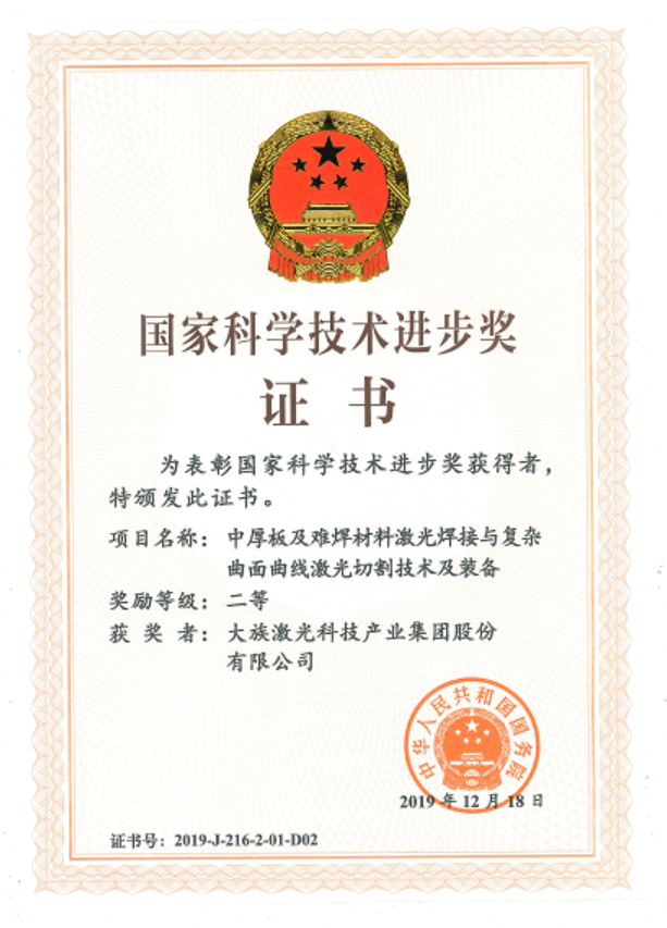 400-666-4000 2019年,大族激光智能裝備集團(tuán)“中厚板及難焊材料激光焊接與復(fù)雜曲面曲線激光切割技術(shù)及裝備”項(xiàng)目榮獲科技界最高獎(jiǎng)“國(guó)家科學(xué)技術(shù)進(jìn)步獎(jiǎng)”;代表國(guó)際領(lǐng)先水平的三維五軸激光加工裝備獲得“中國(guó)好設(shè)計(jì)獎(jiǎng)”。