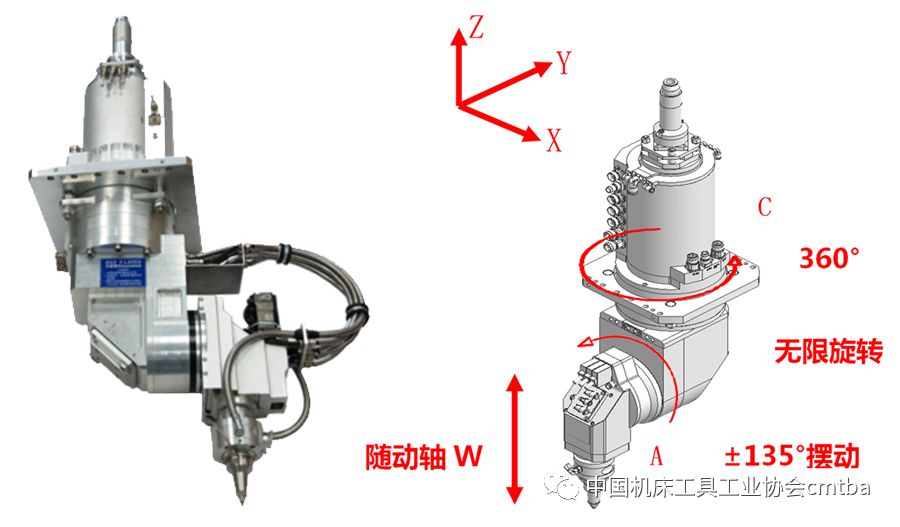 精密的光學(xué)計(jì)算,制定系統(tǒng)幾何的空間算法,研制360°無(wú)線旋轉(zhuǎn)三維切割頭,自主創(chuàng)新,擁有核心技術(shù),是繼國(guó)外三家企業(yè)后,第四家能夠生產(chǎn)360°無(wú)線旋轉(zhuǎn)三維切割頭的廠家,打破了國(guó)外技術(shù)壟斷。360°無(wú)線旋轉(zhuǎn)三維五軸切割頭如圖6所示。
