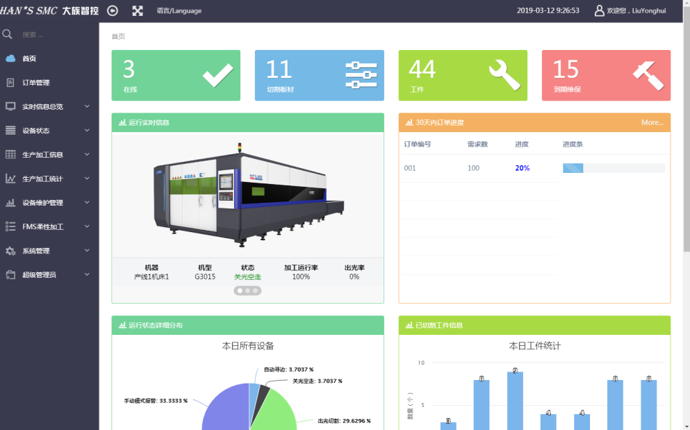 400-666-4000 大族激光智能裝備集團(tuán)Han’s MeSys激光設(shè)備信息管理系統(tǒng),一套面向制造企業(yè)車間管理層的生產(chǎn)信息化管理系統(tǒng)??梢詾槠髽I(yè)提供包括訂單進(jìn)度實時監(jiān)控、設(shè)備狀態(tài)管理、生產(chǎn)數(shù)據(jù)管理、零件損壞維保管理和FMS自動生產(chǎn)線監(jiān)控等管理模塊,為企業(yè)打造一個全面化信息管理系統(tǒng)。