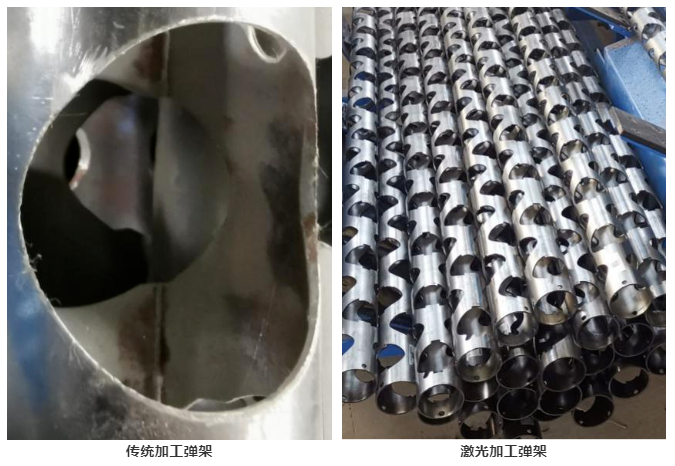 通過對激光器功率、氣流、系統(tǒng)及NC程序優(yōu)化,生產(chǎn)線實現(xiàn)對彈架高效率、高質(zhì)量斷面切割及嚴格的毛刺和掛渣控制。