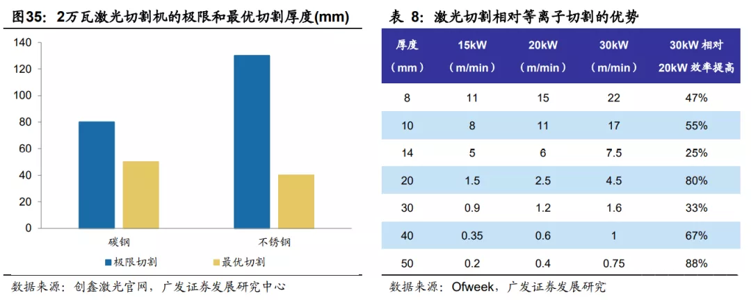 伴隨功率提高,設(shè)備的可切割厚度和效率同時(shí)提升,開啟對(duì)等離子切割的替代。