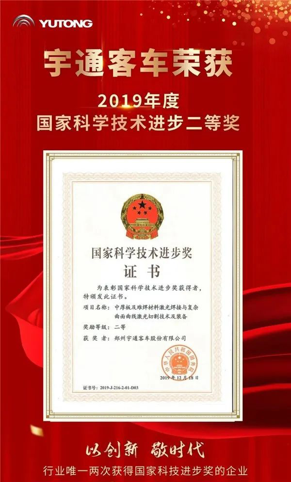 日前,國(guó)務(wù)院正式頒發(fā)2019年國(guó)家科學(xué)技術(shù)進(jìn)步獎(jiǎng)證書(shū),鄭州宇通客車(chē)股份有限公司《中厚板及難焊材料激光焊接與復(fù)雜曲面曲線激光切割技術(shù)及裝備》項(xiàng)目榮獲國(guó)家科技進(jìn)步獎(jiǎng)二等獎(jiǎng)。