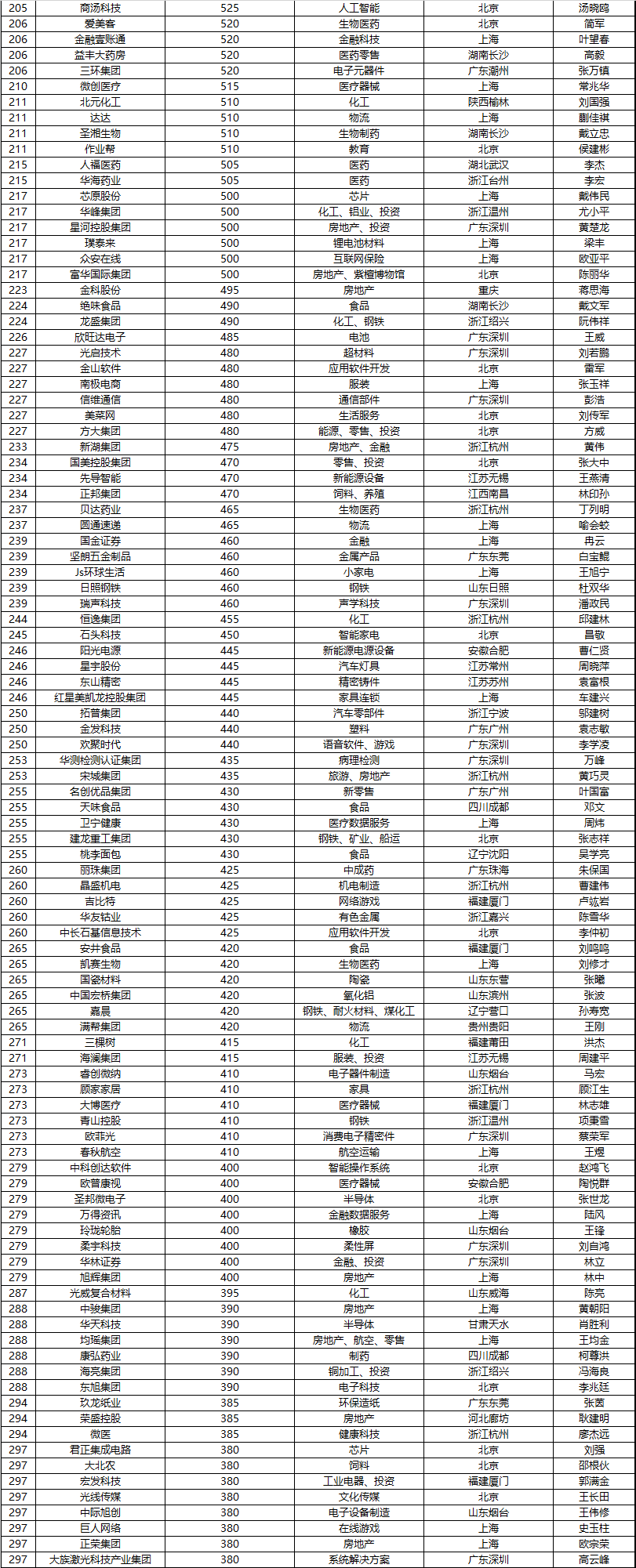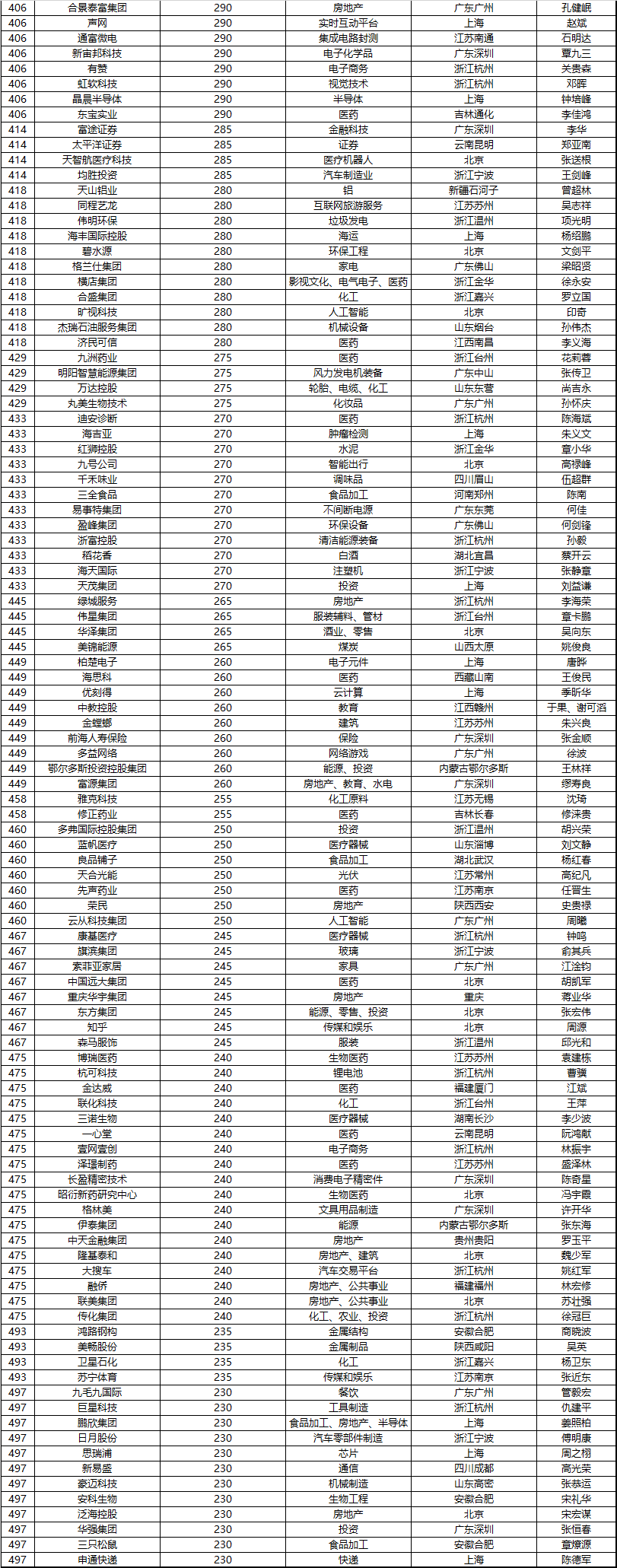 500強(qiáng)民營(yíng)企業(yè)去年銷售額總和22萬億元,是去年中國(guó)GDP的五分之一,超過英國(guó)一年的GDP;共擁有員工970萬人。胡潤(rùn)表示:“要上中國(guó)500強(qiáng)榜單并不容易,今年門檻比去年高了90億元,達(dá)到230億元,但仍然有120家企業(yè)新上榜,500強(qiáng)的平均價(jià)值比去年增長(zhǎng)了55%,達(dá)到1100億元。上榜企業(yè)在各個(gè)領(lǐng)域已經(jīng)達(dá)到世界級(jí)?!?/p>